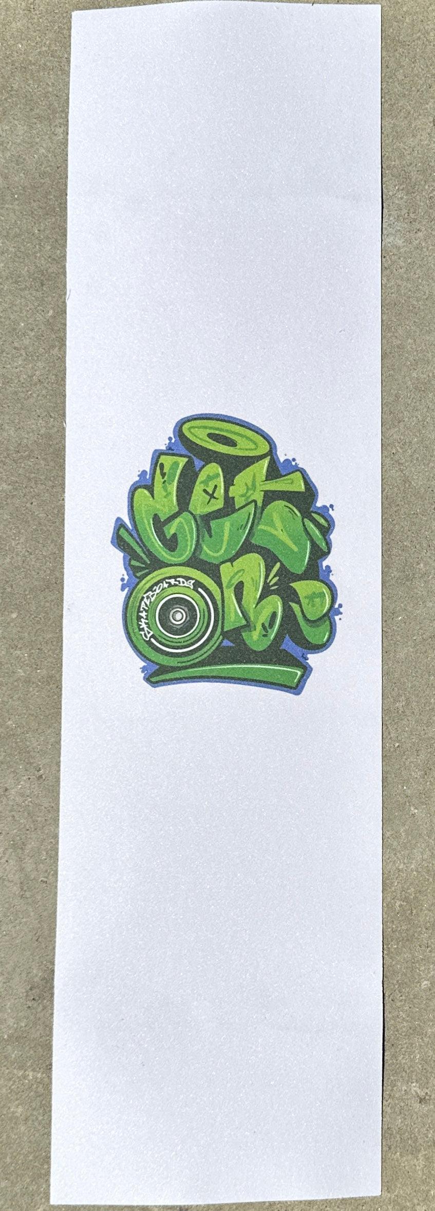 Bring street art to your setup with the Get On Skateboards Custom Graffiti Graphic Grip. This premium grip tape features our graffiti design, printed with vibrant, long-lasting colors that pop on your board. Made with pro-quality grit for maximum flick and control, it’s easy to apply and is long lasting.